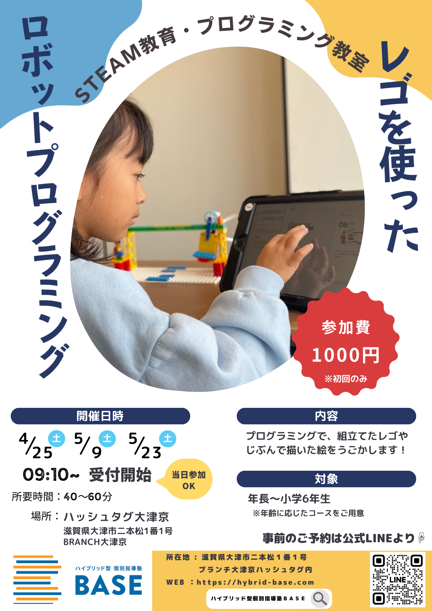 プログラミング専用のLEGOロボットを組み立て、プログラミングをして自分が作ったロボットを動かします。受講生2・3名に対してスタッフが1名対応させていただくので初めてのお子さまでも安心してご体験いただくことができます。